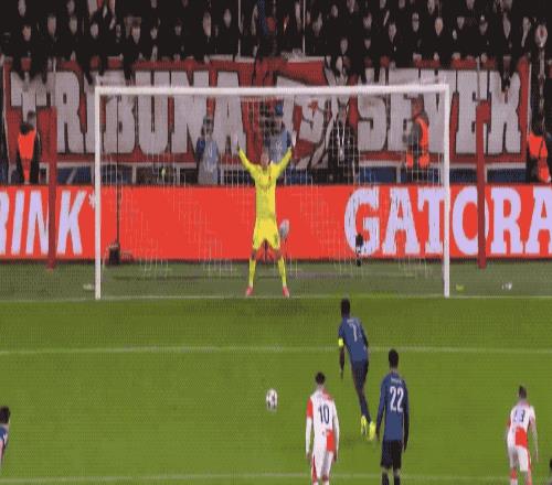 第32分钟,队长萨卡操刀主罚,虽然门将判断正确,怎奈球速太快,扑救不及。
