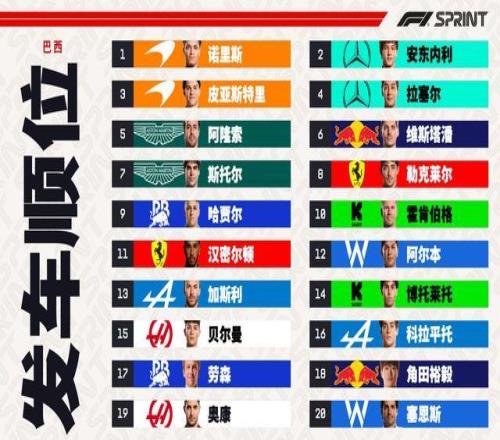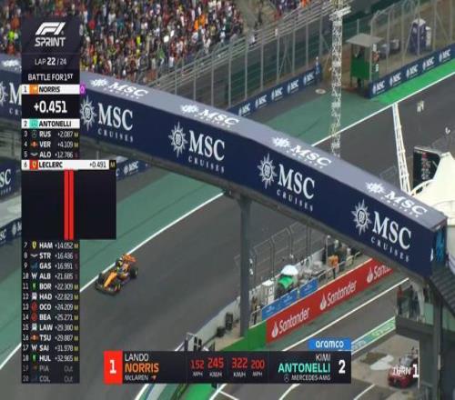 F1巴西站冲刺赛:诺里斯夺冠,安东内利第2,皮亚斯特里退赛