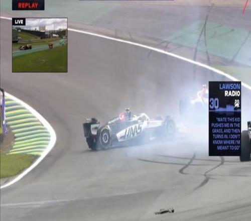 第1圈:劳森追尾贝尔曼,第一赛段短暂出现黄旗;