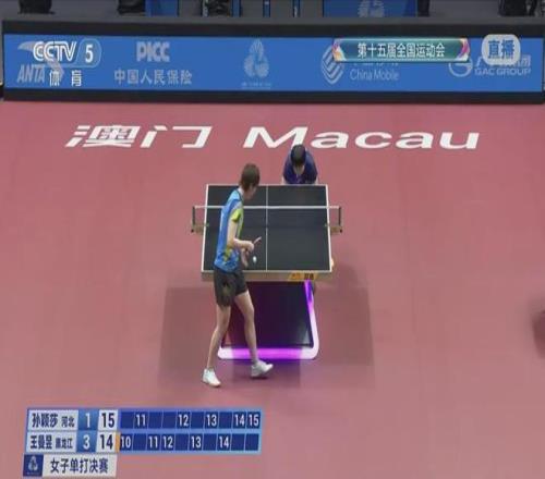 11月16日,十五运会乒乓球项目在澳门银河综艺馆展开女单决赛争夺。